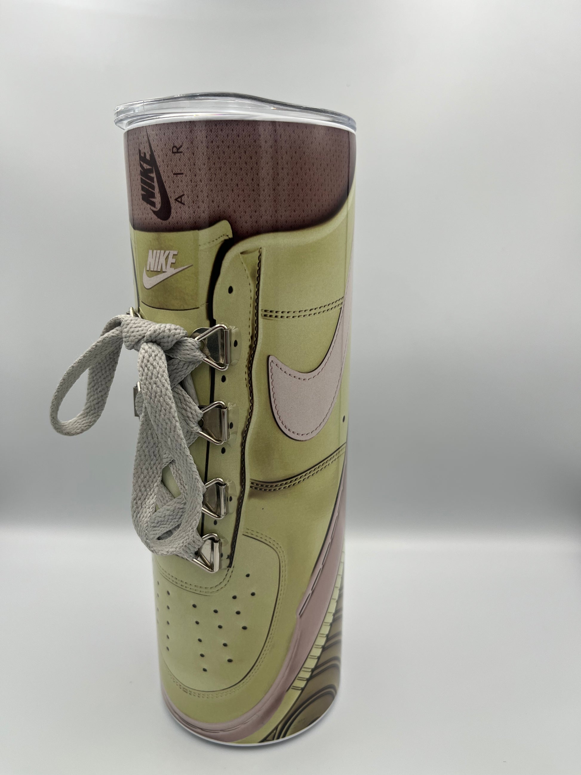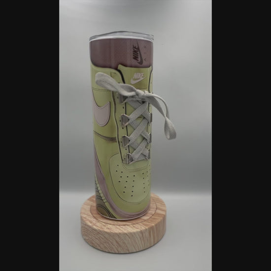Dynamic Green Sneaker Print: This tumbler boasts a vibrant green design inspired by the iconic Nike sneaker culture. The detailed print captures the energy and spirit of athleticism, making it a standout piece for anyone who loves to express their passion for fashion and fitness.